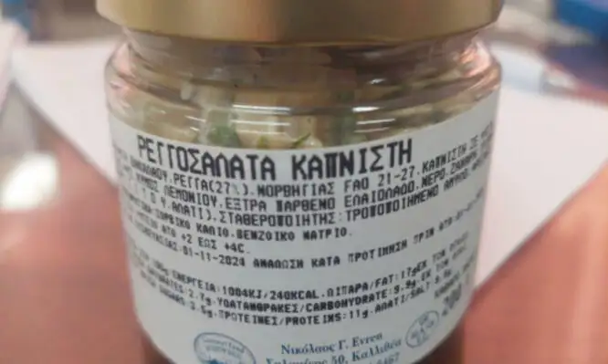 Συγκεκριμένα, πρόκειται για ρεγγοσαλάτα καπνιστή με την επωνυμία «GOURMET FOOD BOSRHOROUS», η οποία διακινείται στην Ελλάδα σε συσκευασίες των 200g, από την επιχείρηση «Νικόλαος Γ. Evren» (Σαλαμίνος 50, Καλλιθέα Αττικής).