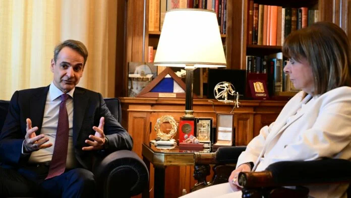 «Εύχομαι να συνεχίσετε να συμμετέχετε με τον δικό σας ξεχωριστό τρόπο στον δημόσιο βίο» είπε ο Κυριάκος Μητσοτάκης απευθυνόμενος στην Πρόεδρο της Δημοκρατίας.