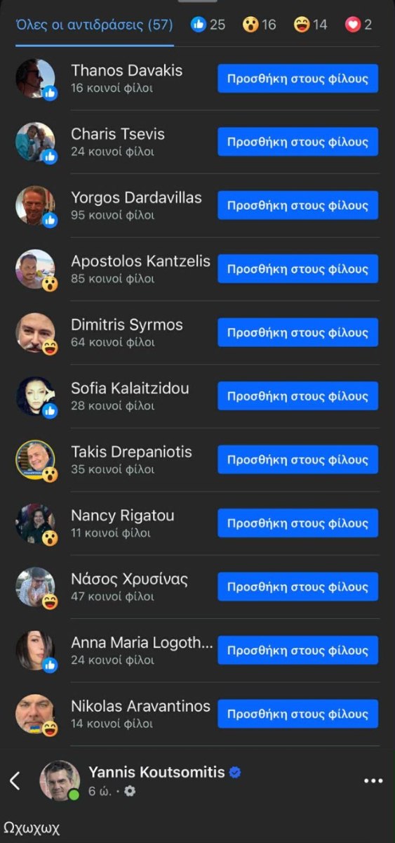 Ανάμεσά τους, δύο δημοσιολογούντες που δεν παρέλειψαν να δείξουν ότι διασκεδάζουν με το απειλητικό περιεχόμενο της ανάρτησης εναντίον του αρχηγού της αξιωματικής αντιπολίτευσης της χώρας.