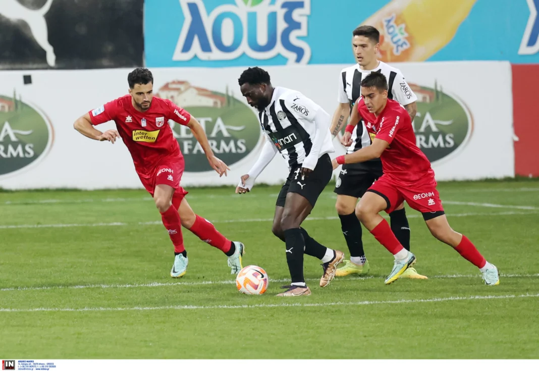 Στο 45’ ο Νέιρα έβγαλε μπαλιά στην πλάτη της άμυνας του Βόλου προς τον Ντίκο, ο οποίος πέρασε τον Κλέιμαν, αλλά την ύστατη ώρα δεν μπόρεσε να νικήσει τον γκολκίπερ της θεσσαλικής ομάδας και τους στόπερ. Στην εξέλιξη της φάσης η κεφαλιά του Νέιρα, αποκρούστηκε πάνω στη γραμμή από τον Άλχο.