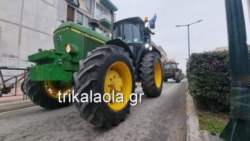 Οι κινητοποιήσεις των αγροτών στη Θεσσαλία συνεχίζονται. Οι αγρότες, που είχαν ξεκινήσει από τον κόμβο Μεγαλοχωρίου με τα τρακτέρ τους έκαναν πορεία στην πόλη και κατέληξαν στην Περιφερειακή Ενότητα Τρικάλων.