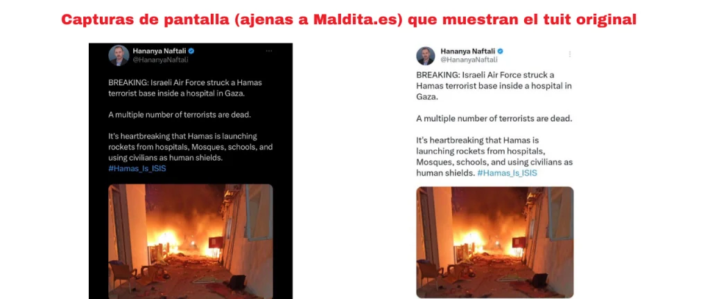 Οι Παλαιστίνιοι από την πλευρά τους, μέσω του πρέσβη της στα Εθνική Έθνη, Riyad Mansour, να φέρνουν στη δημοσιότητα την ανάρτηση του Hananya Naftali, βοηθού του Ισραηλινού πρωθυπουργού, Μπενιαμίν Νετανιάχου, ο οποίος δημοσίευσε λίγη ώρα μετά το κτύπημα ότι η ισραηλινή Αεροπορία κτύπησε βάση της Χαμάς μέσα σε νοσοκομείο, την οποία στη συνέχεια τη διέγραψε.