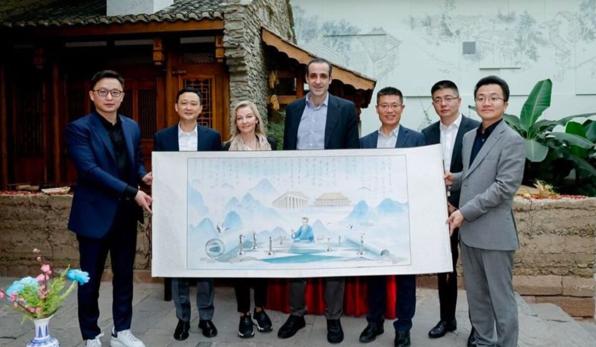 Εικονίζεται ο Γρηγόρης Δημητριάδης με συνεργάτες του, όπως γράφει η σχετική λεζάντα στην μακρινή και ακόμη εξωτική Κίνα.