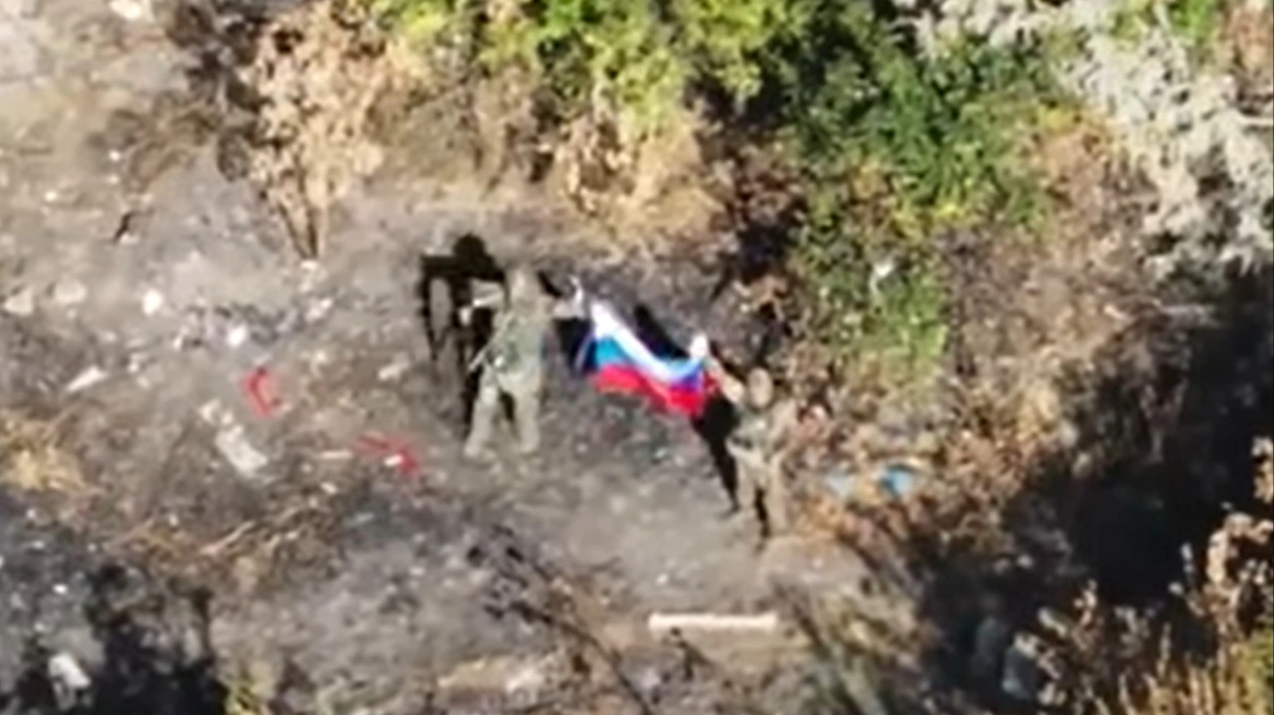 Σε βίντεο που δόθηκε στη δημοσιότητα από το ρωσικό υπουργείο Άμυνας διακρίνονται στρατιώτες που κρατούν ψηλά μια ρωσική σημαία να προωθούνται στο Σαντριχολόβε
