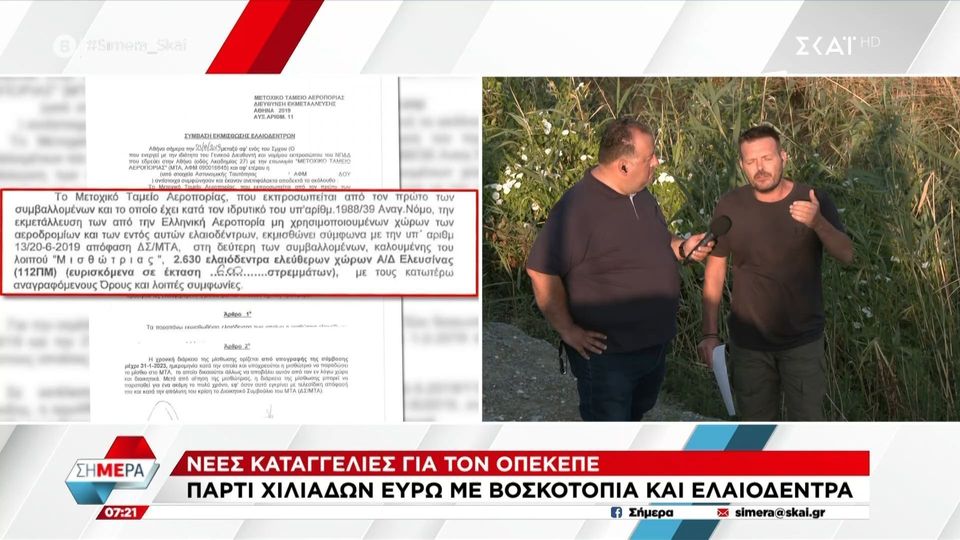 Στον ίδιο σταθμό, αγρότης από τη Λάρισα, ο Κώστας Μητροδήμος κατήγγειλε, δείχνοντας και σχετικό έγγραφο, πως η σύζυγος πρώην αντιπροέδρου του ΟΠΕΚΕΠΕ δήλωνε πως νοίκιαζε στρέμματα μέσα σε αεροδρόμιο της Αεροπορίας, λαμβάνοντας επιδοτήσεις πολλών χιλιάδων ευρώ. Όπως σημείωσε μεταξύ άλλων, «το 2019 νοικιάστηκαν από το Μετοχικό Ταμείο Αεροπορίας στην 112 Πτέρυγα Μάχης, στην Ελευσίνα, 2.630 δέντρα ελιές, σε έκταση 600 στρεμμάτων. Φέρεται να νοίκιασε σύζυγος πρώην αντιπροέδρου του ΟΠΕΚΕΠΕ».