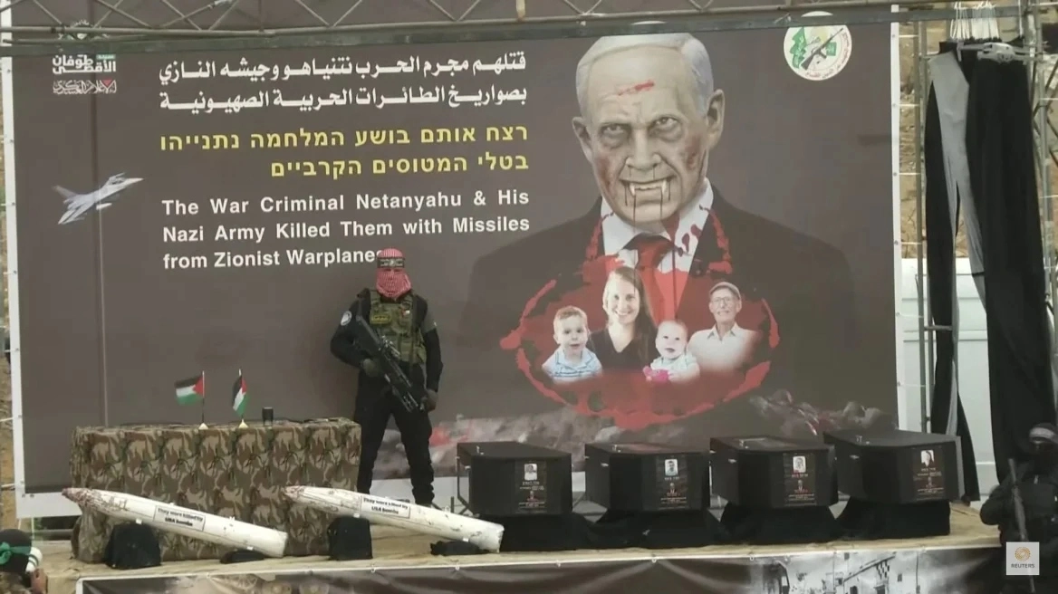 Πριν την παράδοση των σορών στη Διεθνή Επιτροπή του Ερυθρού Σταυρού σε ζωντανή αναμετάδοση από τη Χαν Γιούνις, στο νότιο τμήμα της Λωρίδας της Γάζας, προηγουμένως πάνω σε μια εξέδρα είχαν τοποθετηθεί τέσσερα φέρετρα, καθένα από τα οποία έφερε τη φωτογραφία ενός ομήρου.