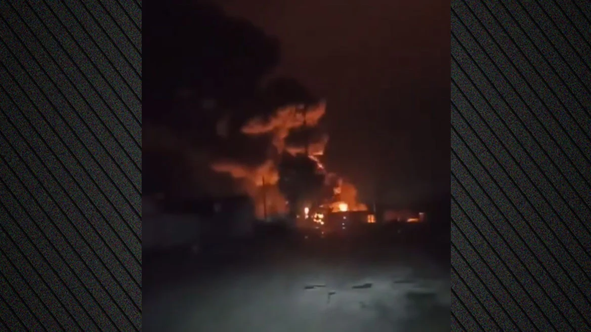Ανεπίσημοι λογαριασμοί σε ιστοτόπους κοινωνικής δικτύωσης ανέβασαν βίντεο το οποίο υποστηρίζουν ότι δείχνει τη φωτιά σε μια δεξαμενή αποθήκευσης πετρελαίου στην πόλη.