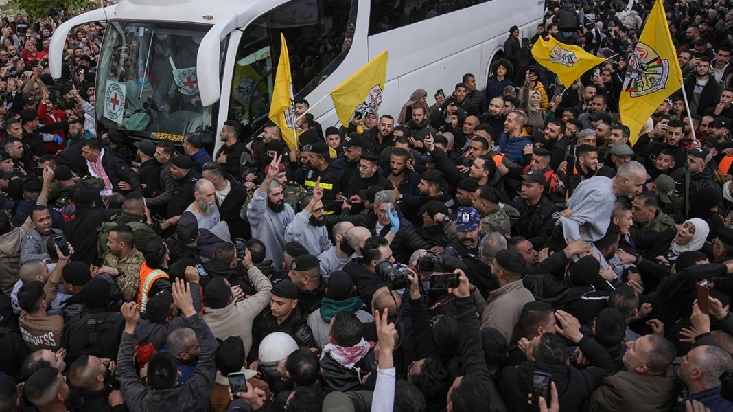 «Είναι ένα απερίγραπτο συναίσθημα», είπε ένας από τους απελευθερωμένους Παλαιστίνιους στο Al-Qahera News, χαμογελώντας και κουνώντας το χέρι από το παράθυρο του λεωφορείου.