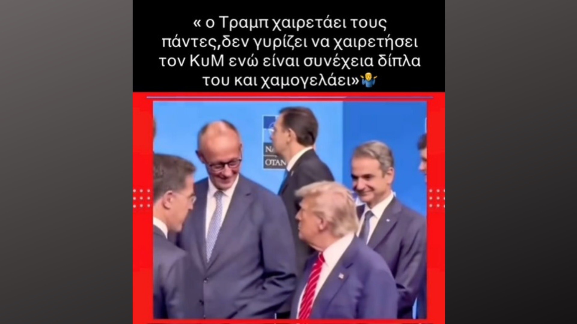 Ο δημοσιογράφος δεν απέφυγε τον πειρασμό να σχολιάσει το viral video με τον Ντόναλντ Τραμπ και τον Κυριάκο Μητσοτάκη στη Σύνοδο Κορυφής. Όπως αναφέρει, «ο Ντόναλντ Τραμπ χαιρετάει τους πάντες, δεν γυρίζει να χαιρετίσει τον Κυριάκο Μητσοτάκη ενώ είναι συνέχεια δίπλα του και χαμογελάει».
