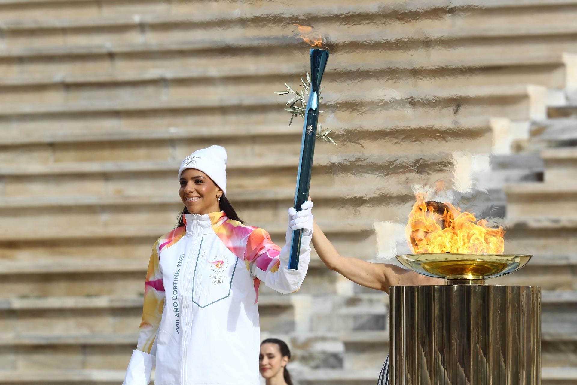 Χωρίς το καλλιτεχνικό σκέλος, λόγω καιρικών συνθηκών, πραγματοποιήθηκε η παράδοση της Φλόγας στους Ιταλούς που σε δύο μήνες φιλοξενούν τους Χειμερινούς Ολυμπιακούς Αγώνες.