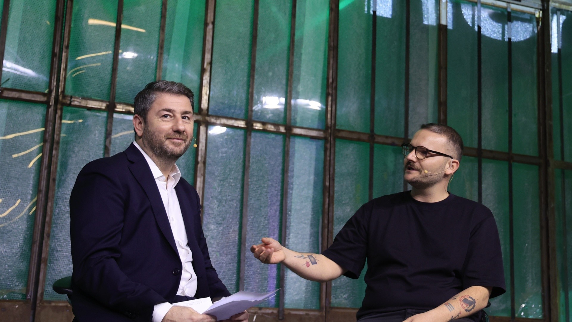Ο αρχηγός του ΠΑΣΟΚ ξέφυγε από μία απλή τυποποιημένη ομιλία καθώς είχε μία συζήτηση με τον γνωστό σεναριογράφο Παναγιώτη Μαρκεζίνη.