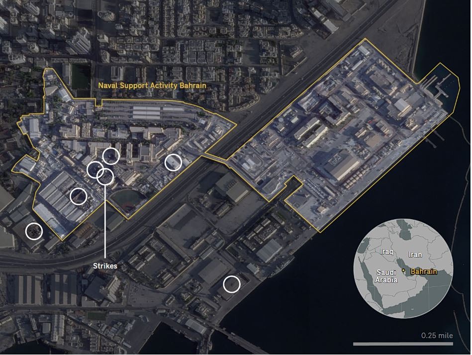 Όπως ανέφερε το Εθνικό Δημόσιο Ραδιόφωνο – NPR των ΗΠΑ, εκατοντάδες ναύτες εκκένωσαν κακήν κακώς τη βάση τους στο Μπαχρέιν και επέστρεψαν στις Ηνωμένες Πολιτείες, μετά την επίθεση που δέχτηκε η βάση από ιρανικούς πυραύλους και drones. Εκτός από τη βάση στο Μπαχρέιν, το NPR έμαθε ότι πραγματοποιήθηκαν εκκενώσεις και σε άλλες αμερικανικές στρατιωτικές βάσεις της περιοχής.