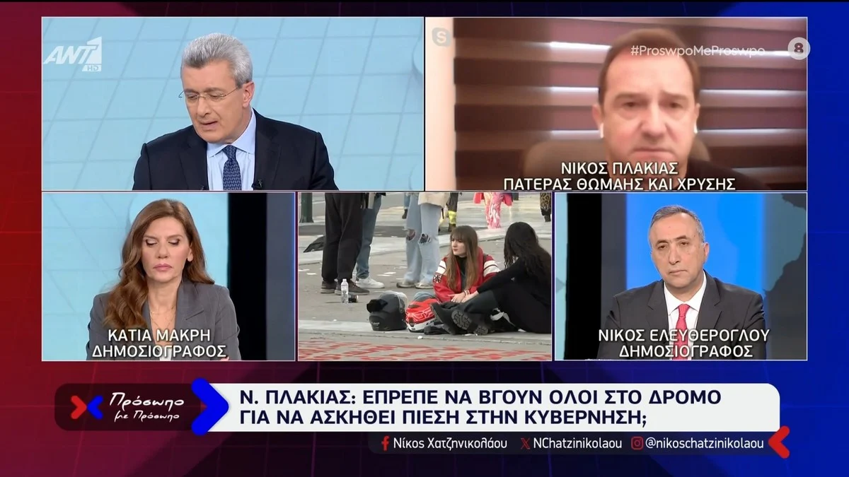 Την αντίθεση του σχετικά με τον χρόνο που γίνεται η προανακριτική για την τραγωδία των Τεμπών εξέφρασε ο Νίκος Πλακιάς στην εκπομπή του Νίκου Χατζηνικολάου, «Πρόσωπο με Πρόσωπο», το βράδυ της Πέμπτης.