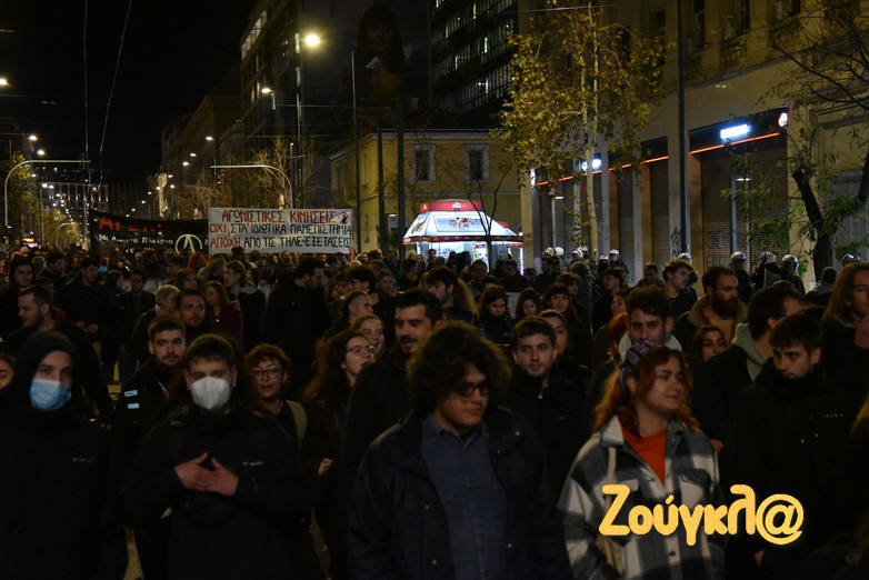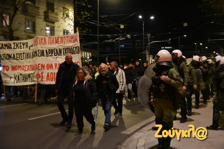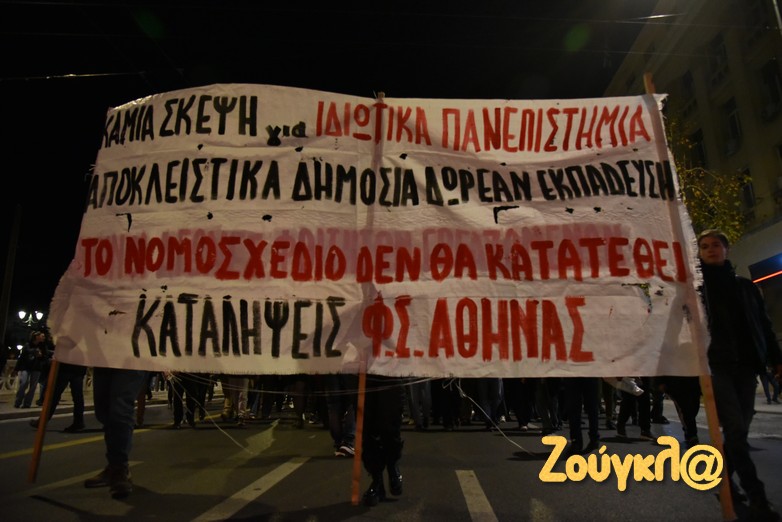Πορεία από τα Προπύλαια προς το Σύνταγμα πραγματοποίησαν το απόγευμα της Δευτέρας, 12 Φεβρουαρίου, ομάδες φοιτητών, μαθητών, εργαζομένων και διαφόρων συλλογικοτήτων που τάσσονται κατά των ιδιωτικοποιήσεων, αλλά και των ιδιωτικών πανεπιστημίων.