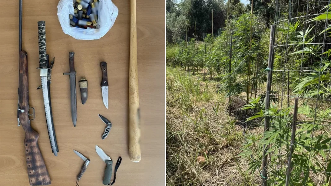 • 164 δενδρύλλια σε δύο παράνομες φυτείες και ένα θερμοκήπιο εντός επιχείρησης του 61χρονου,