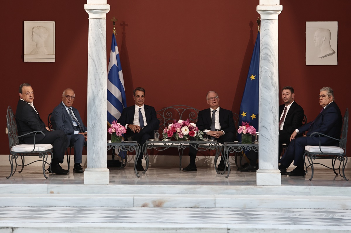 Είναι χαρακτηριστικό ότι ο Κυριάκος Μητσοτάκης κατά τη συνάντηση με τους προέδρους κ.κ. Ανδρουλάκη, Κουτσούμπα, Φάμελλο παρόντος του Κ. Τασούλα και του Νικήτα Κακλαμάνη, στο κιόσκι του προεδρικού κήπου, φέρεται να μην έκρυψε τη δυσφορία του για το τοξικό κλίμα που επικρατεί στον πολιτικό διάλογο, σύμφωνα με το iefimerida.gr.