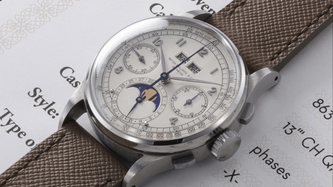 Το Patek Philippe Perpetual Calendar Reference 1518, κατασκευασμένο το 1943, είναι ένα από τα μόλις τέσσερα γνωστά δείγματα που φτιάχτηκαν από ανοξείδωτο χάλυβα, κάτι ιδιαίτερα σπάνιο, που το έκανε ακόμη πιο περιζήτητο από τα ρολόγια που είναι φτιαγμένα από χρυσό.