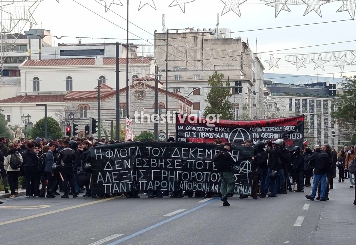 Η πορεία που ξεκίνησε από τα Προπύλαια θα κινηθεί σε κεντρικούς δρόμους της Αθήνας και αναμένεται να καταλήξει στο σημείο της δολοφονίας του Αλέξανδρου Γρηγορόπουλου.