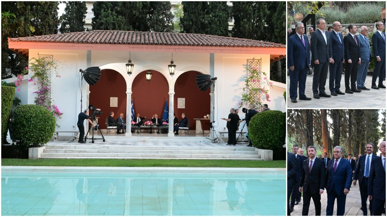 Η αμηχανία στο κιόσκι του προεδρικού κήπου ήταν εμφανής και επιβεβαιώθηκε από τις δηλώσεις όσων παραβρέθηκαν. Η συζήτηση Μητσοτάκη, Ανδρουλάκη, Φάμελλου, Κουτσούμπα με τον Πρόεδρο τη Δημοκρατίας και τον Πρόεδρο της Βουλής, Νικήτα Κακλαμάνη κράτησε περίπου μισή ώρα, ενώ το ζήτημα της τοξικότητας στη δημόσια σφαίρα έθεσε ο Πρόεδρος της Δημοκρατίας.