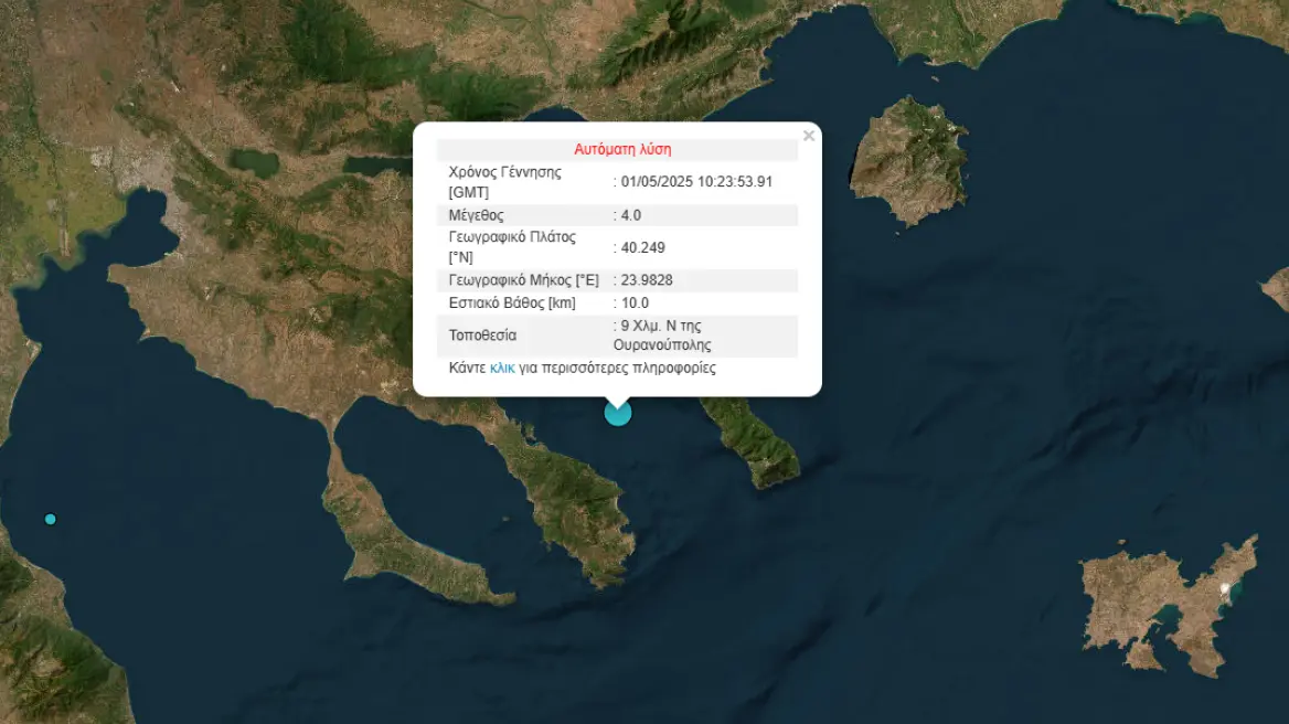 Το επίκεντρο του σεισμού εντοπίζεται 9 χιλιόμετρα νότια της Ουρανούπολης