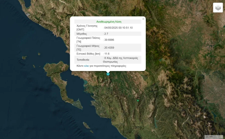 Σεισμός μεγέθους 2,7 ρίχτερ σημειώθηκε στη Θεσπρωτία και συγκεκριμένα 8 χλμ. ΔΒΔ της Λεπτοκαρυάς. Η δόνηση σημειώθηκε στις 03:10 τα ξημερώματα της Κυριακής και είχε εστιακό βάθος 11,5χλμ.