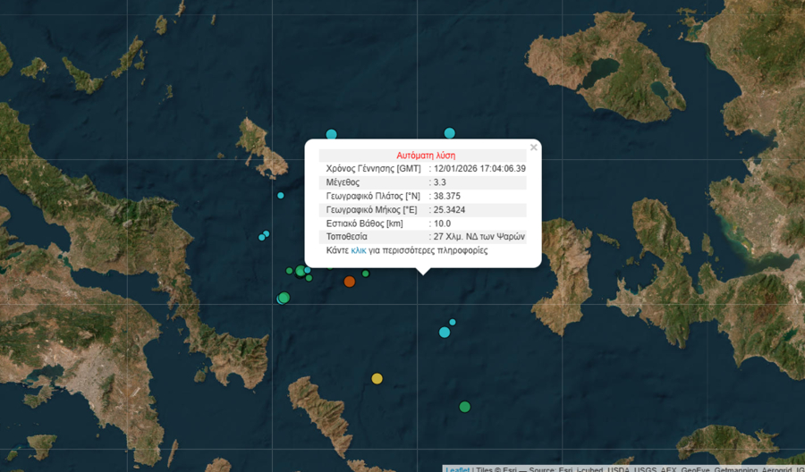 Σεισμός καταγράφηκε ανοιχτά των Ψαρών, μεγέθους 3,3 Ρίχτερ σύμφωνα με την αυτόματη λύση του Γεωδυναμικού Ινστιτούτου.