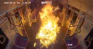 Όπως καταγράφηκε από τις κάμερες ασφαλείας, ο δράστης περιέλουσε το πάτωμα του βαγονιού με εύφλεκτο υγρό και άναψε φωτιά, προκαλώντας πανικό και χάος.