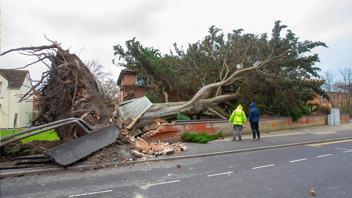 Η καταιγίδα έχει προκαλέσει σημαντική αναστάτωση στη Νότια Ουαλία, τη δυτική Αγγλία και τη Βόρεια Ιρλανδία, με πολλές σιδηροδρομικές γραμμές και πτήσεις να ακυρώνονται. Ένας άνδρας γύρω στα 40 σκοτώθηκε όταν ένα δέντρο έπεσε πάνω στο φορτηγό του, γράφει το BBC.