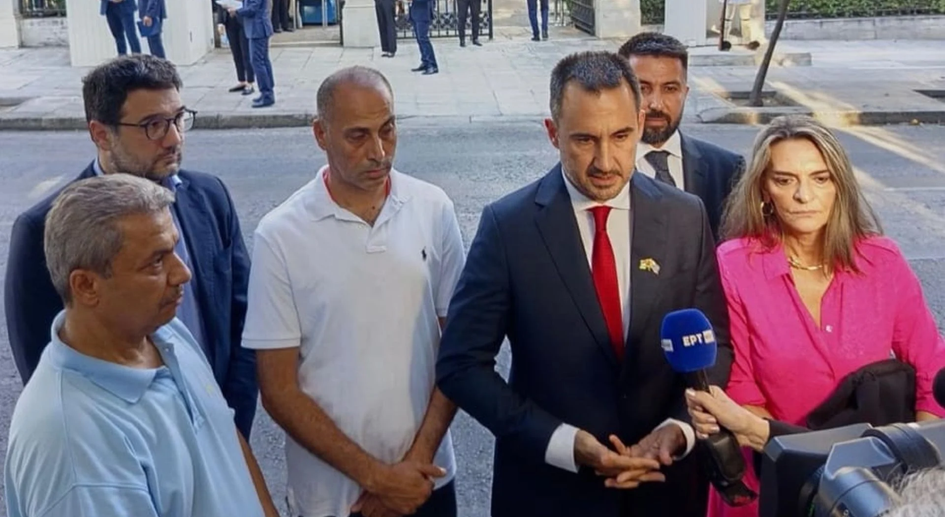 Συνοδευόμενος από Παλαιστίνιο πρόσφυγα έφτασε το απόγευμα της Πέμπτης στο Προεδρικό Μέγαρο για τη δεξίωση της 24ης Ιουλίου ο πρόεδρος της Νέας Αριστεράς, Αλέξης Χαρίτσης, ωστόσο τελικά αποχώρησε πριν μπει.