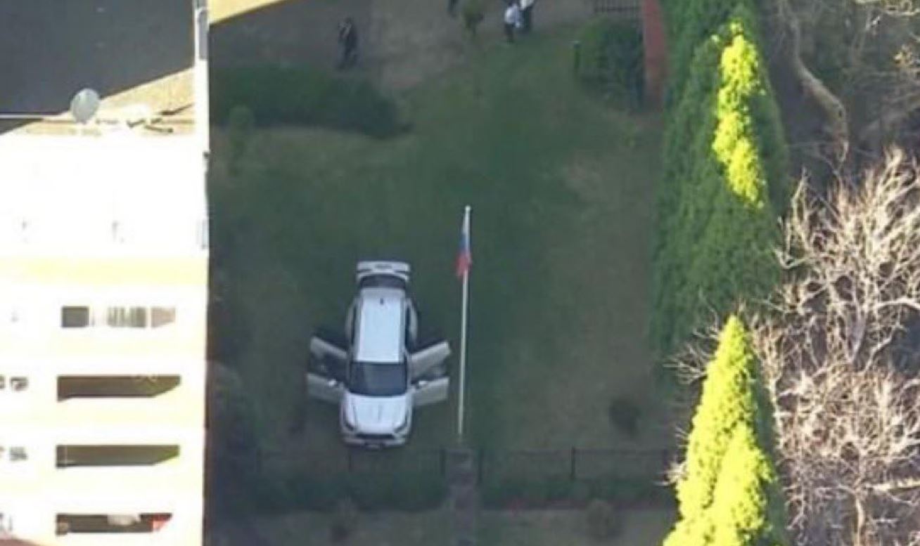 Η αστυνομία στην πολιτεία της Νέας Νότιας Ουαλίας εξήγησε πως κλήθηκε στο προξενείο της Ρωσίας αφού ειδοποιήθηκε περί τις 08:00 (τοπική ώρα· 01:00 ώρα Ελλάδας) πως μη εξουσιοδοτημένο όχημα βρισκόταν σταθμευμένο σε δρομάκι μπροστά στη διπλωματική αποστολή. Μέλη της προσπάθησαν να μιλήσουν στον οδηγό, που όμως «εισέβαλε διά της βίας» στην περίβολο του προξενείου, συνέχισε η αστυνομία σε ανακοίνωσή της.
