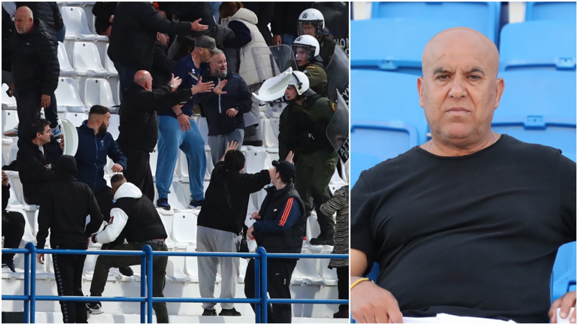 Σχεδόν ταυτόχρονα, ομάδα περίπου δέκα ατόμων άρχισε να πετά αντικείμενα, από μπουκάλια νερού μέχρι καθίσματα που ξηλώθηκαν από την κερκίδα. Οι αστυνομικοί προχώρησαν σε έξι προσαγωγές, εκ των οποίων οι τρεις μετατράπηκαν σε συλλήψεις.