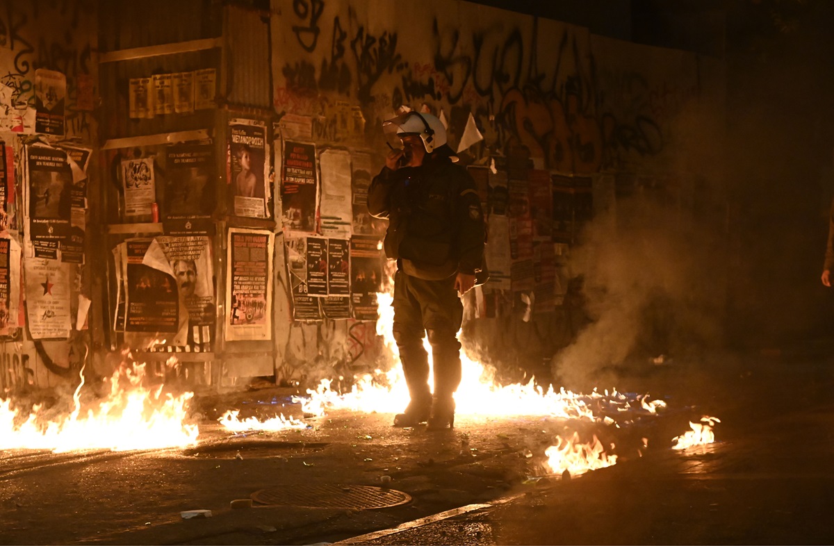 Στα δικαστήρια της πρώην σχολής Ευελπίδων οδηγήθηκαν οι δέκα συλληφθέντες από τα επεισόδια της Παρασκευής στα Εξάρχεια μετά την πορεία στη μνήμη του Αλέξη Γρηγορόπουλου.