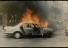 Από την έκρηξη και τη φωτιά που ακολούθησε προκλήθηκαν μικρές υλικές ζημιές στην είσοδο του κτηρίου.