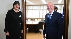 Η συνάντηση πραγματοποιείται στο πλαίσιο της επίσημης επίσκεψης που πραγματοποιεί η κα Κοβέσι στην Ελλάδα.