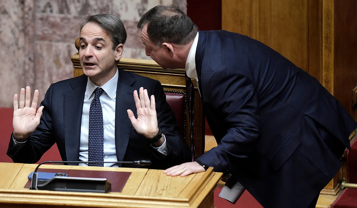 Ο φωτογραφικός φακός του Intime απαθανάτισε ένα στιγμιότυπο στα υπουργικά έδρανα, με πρωταγωνιστές τον Κυριάκο Μητσοτάκη και τον Βασίλη Γιόγιακα.