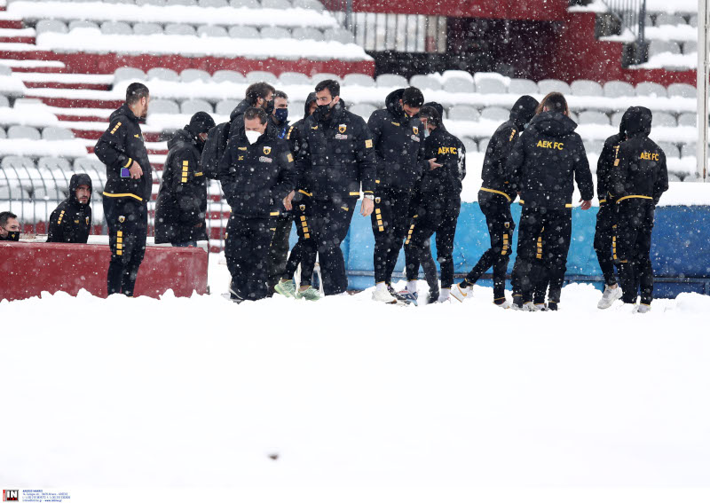Οι άσχημες καιρικές συνθήκες που επικρατούσαν από χθες έστρωσαν για τα καλά το χιόνι στο γήπεδο και ήταν αδύνατο να έρθει σε κατάσταση για αγώνα σήμερα. Ετσι, οι διαιτητές και η Λίγκα πήραν την απόφαση για την αναβολή της αναμέτρησης.