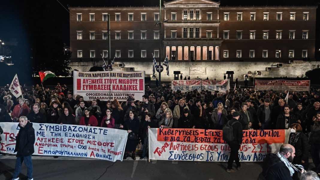 Τα Συνδικάτα ανανέωσαν το ραντεβού τους σε νέο συλλαλητήριο την Τετάρτη 11 Δεκέμβρη, στις 6.30 μ.μ., στο Σύνταγμα, με αφορμή τη συζήτηση στη Βουλή «ενός ακόμα προϋπολογισμού που ισοπεδώνει τις ανάγκες του λαού για να ενισχύει τα κέρδη των επιχειρήσεων και να αυξάνει τις πολεμικές δαπάνες».