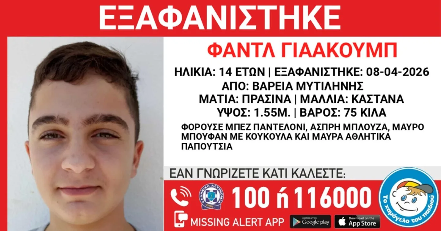 Συναγερμός σήμανε για την εξαφάνιση 14χρονου από χώρο φιλοξενίας ασυνόδευτων ανηλίκων στην περιοχή της Βαρειάς Μυτιλήνης.