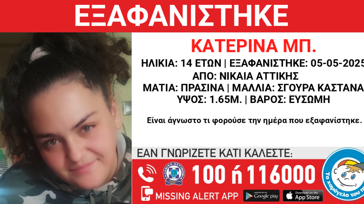 Μία κοπέλα 14 ετών εξαφανίστηκε το πρωί της Δευτέρας από την περιοχή της Νίκαιας, αναφέρει το «Χαμόγελο του Παιδιού».