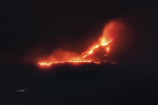 Λάβα και πετρώματα εκτοξεύονται από τον νοτιοανατολικό κρατήρα του ηφαιστείου. Μέχρι αυτή την στιγμή, η λάβα κατευθύνεται προς την κοιλάδα «Mπόβε», στην οποία δεν υπάρχουν κατοικημένες περιοχές.