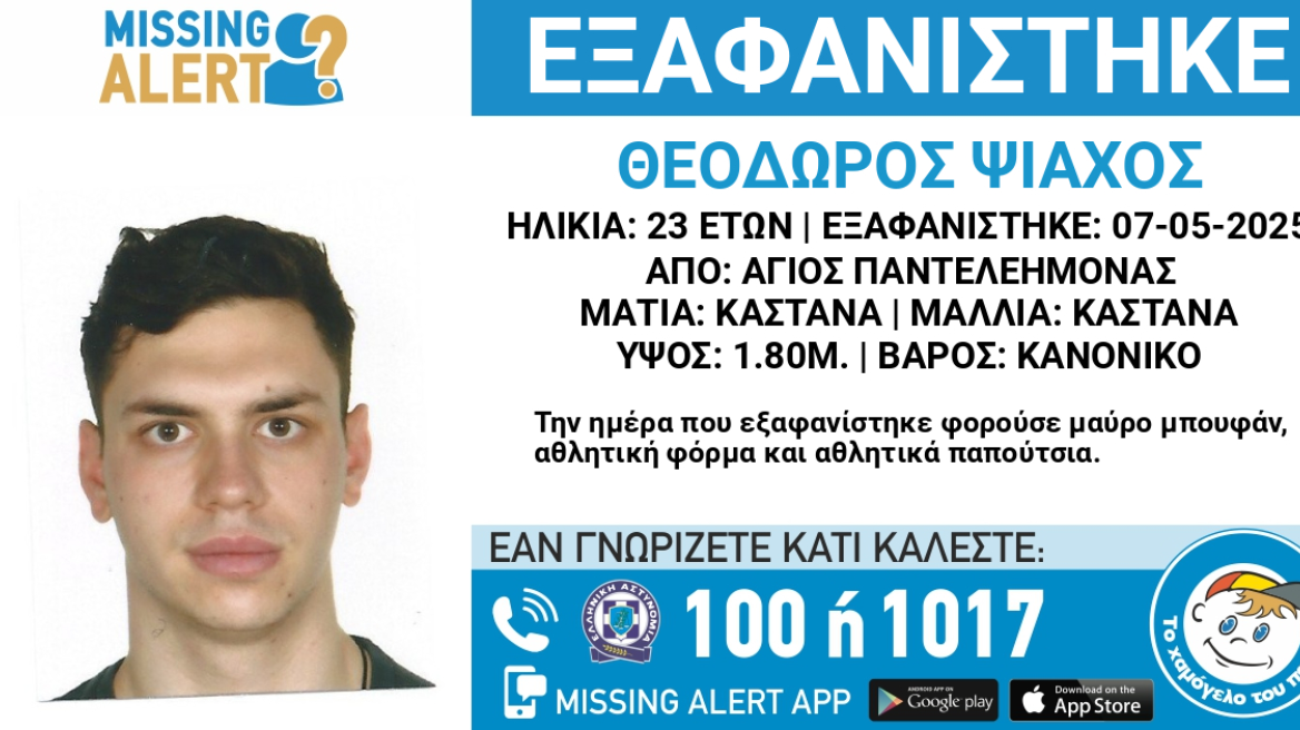 Το Χαμόγελο του Παιδιού ενημερώθηκε για την εξαφάνιση του Θεόδωρου Ψιάχου στις 11 Μαΐου και προχώρησε στη δημοσιοποίηση των στοιχείων του κατόπιν αιτήματος της οικογένειας του, καθώς ενδέχεται να συντρέχουν λόγοι οι οποίοι θέτουν τη ζωή του σε κίνδυνο.