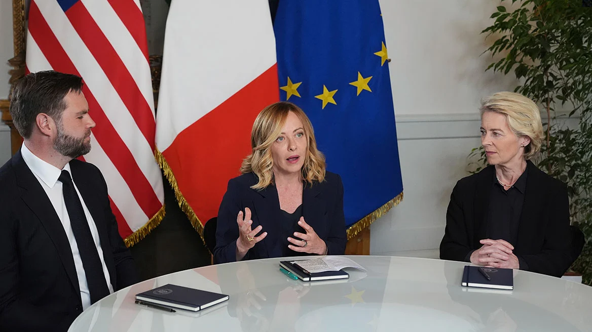 Ο Τζέι Ντι Βανς συναντήθηκε με την πρόεδρο της Ευρωπαϊκής Επιτροπής, Ούρσουλα φον ντερ Λάιεν και την πρωθυπουργό της Ιταλίας, Τζόρτζια Μελόνι σήμερα και είπε πως ελπίζει ότι η συνάντησή τους θα βοηθήσει στην προώθηση των εμπορικών συνομιλιών μεταξύ της ΕΕ και των ΗΠΑ.