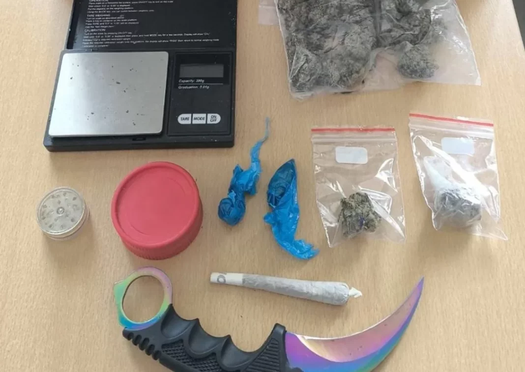 Σύμφωνα με την αστυνομία, στην κατοχή του άνδρα εντοπίστηκαν και κατασχέθηκαν δύο συσκευασίες με κάνναβη συνολικού βάρους 1,4 γραμμαρίων, καθώς και ένα αυτοσχέδιο τσιγάρο κάνναβης.