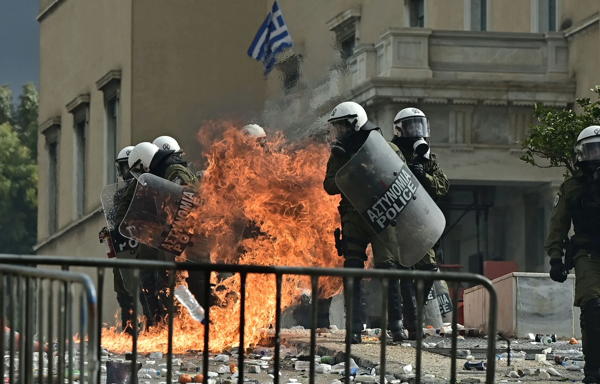 Πληροφορίες αναφέρουν ότι καίγεται το κουβούκλιο του Αγνώστου Στρατιώτη, ενώ εύζωνες μεταφέρθηκαν στο εσωτερικό της Βουλής για να προστατευθούν.