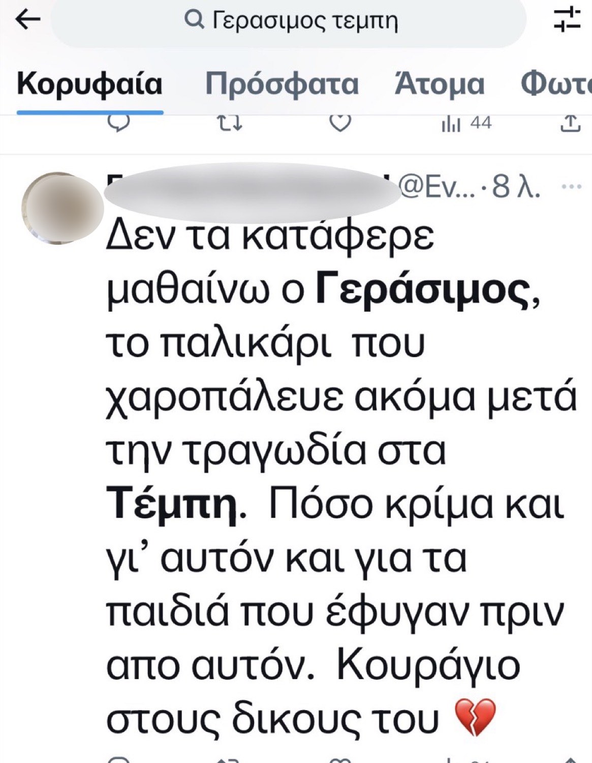 Την ώρα που ο 20χρονος Γεράσιμος – Ιάσωνας δίνει την δική του τιτάνια μάχη ζωής, τα social media κατακλύστηκαν από την ψεύτικη είδηση ότι έφυγε από τη ζωή ο μοναδικός επιζών του πρώτου βαγονιού από την σιδηροδρομική τραγωδία στα Τέμπη.