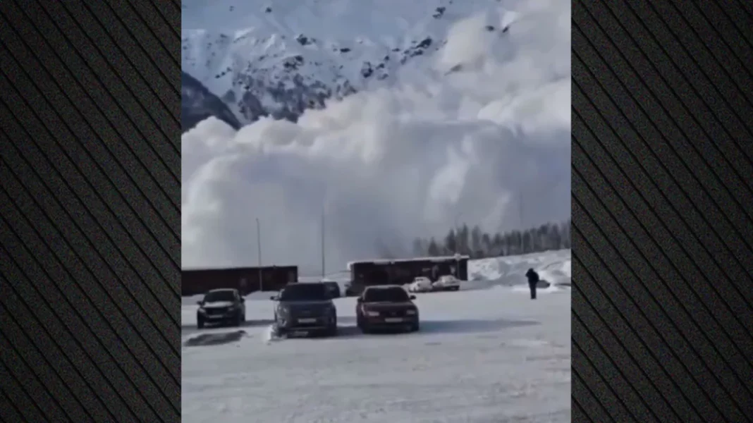 Μεγάλοι όγκοι χιονιού κατεβαίνουν τις πλαγιές του βουνού Έλμπρους πολύ γρήγορα σκεπάζοντας τμήματα του χιονοδρομικού κέντρου και περιοχές κοντά σε εγκαταστάσεις και πίστες