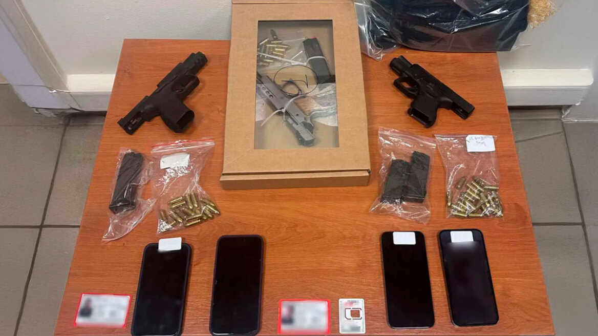 Ακολούθως, με τη συνδρομή αστυνομικών του Τμήματος Πρόληψης και Καταστολής Εγκλημάτων κατάφεραν να ακινητοποιήσουν και να συλλάβουν τον 32χρονο και τον 25χρονο, στην κατοχή των οποίων βρέθηκαν δύο πιστόλια, με 10 και 15 φυσίγγια αντίστοιχα, ενώ το ένα έφερε και φυσίγγιο στη θαλάμη.