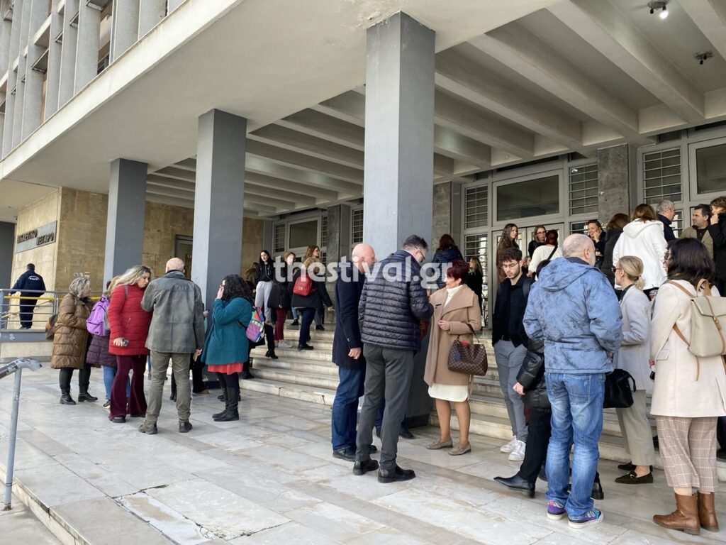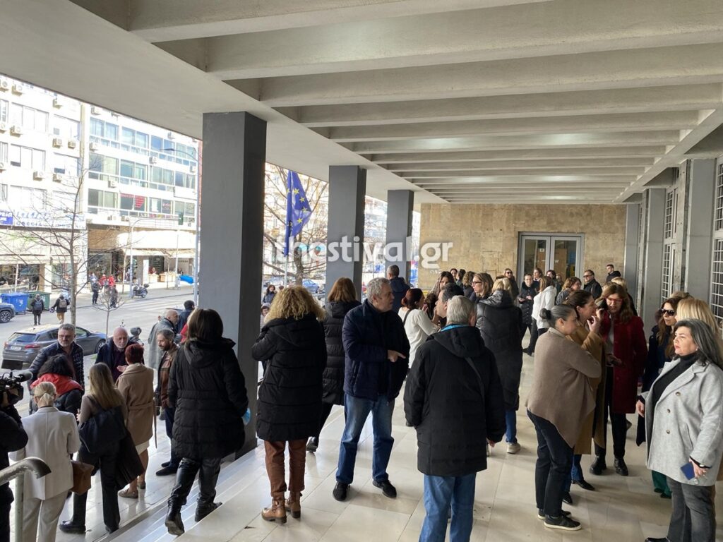 Σήμερα, δεκάδες δικαστικοί υπάλληλοι συγκεντρώθηκαν στην κεντρική είσοδο του Δικαστικού Μεγάρου Θεσσαλονίκης, διαμαρτυρόμενοι για την αποστολή βόμβας στο γραφείο της προέδρου Εφετών, αλλά και για ζητήματα του κλάδου τους. Μάλιστα προχωρούν σε δίωρη (11:00-13:00) αποχή από την εργασία τους.