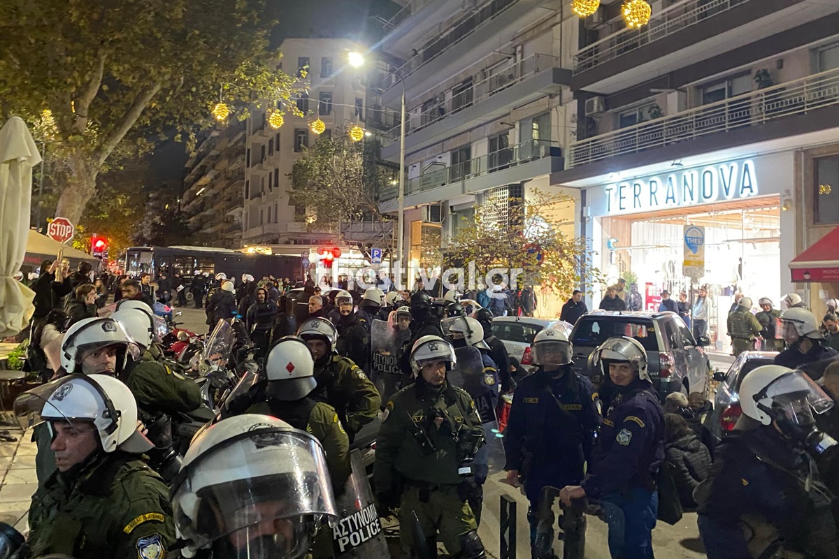 Το μοναδικό διέξοδο που τους δόθηκε ήταν η οδός Δ. Γούναρη προς την Τσιμισκή. Οι διαδηλωτές κινήθηκαν μαζικά προς την οδό Τσιμισκή και επιχείρησαν να πραγματοποιήσουν εκ νέου πορεία. Κουκουλοφόροι πέταξαν πέτρες προς τις αστυνομικές δυνάμεις και τα ΜΑΤ απάντησαν με χειροβομβίδες κρότου λάμψης και δακρυγόνα.