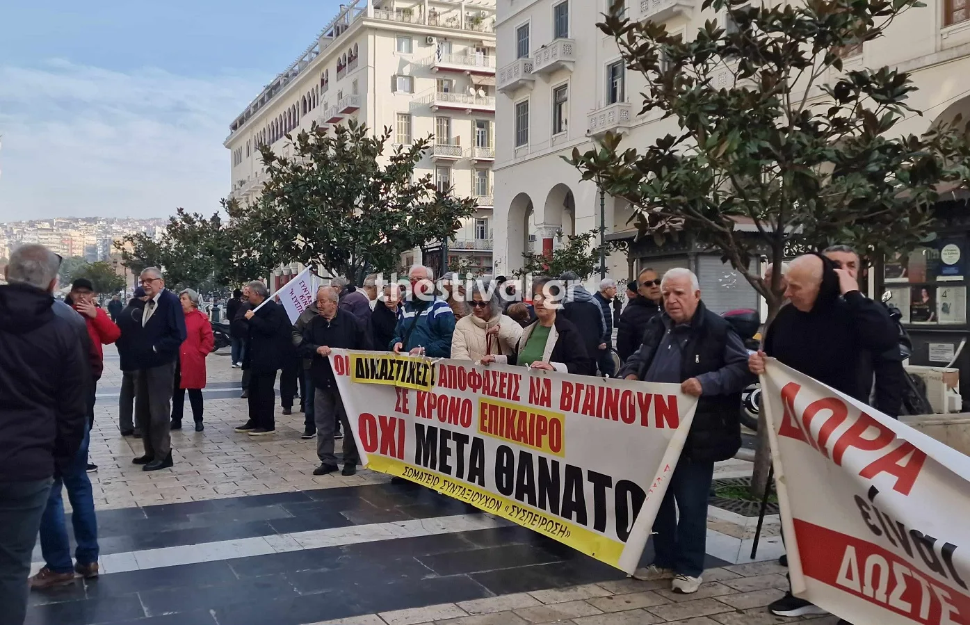 Διαμαρτυρία μπροστά στο κτήριο του ΕΦΚΑ στην Αριστοτέλους, στο κέντρο της Θεσσαλονίκης, πραγματοποίησαν σήμερα το πρωί συνταξιούχοι.